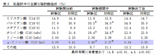研究課題名:エゴマを利用したα-リノレン酸含量の多い牛乳の生産 |