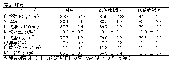 産卵鶏に海洋深層水の原水を20倍希釈(5%添加)して与えることにより、産卵性を低下させずに、卵白の凝固性及び気泡性の高い鶏卵を生産できる。 |