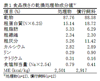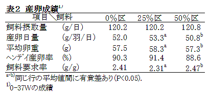 [キーワード]ニワトリ、飼料コスト、一次処理物、50%混合給与 |