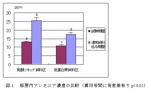 食品残さ発酵液状飼料給与は豚肉質に影響がなく、豚房内のアンモニア発生量が減少 |