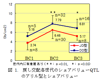 DNAマーカーアシスト法によるQTLの導入試験 |