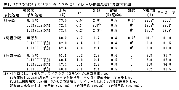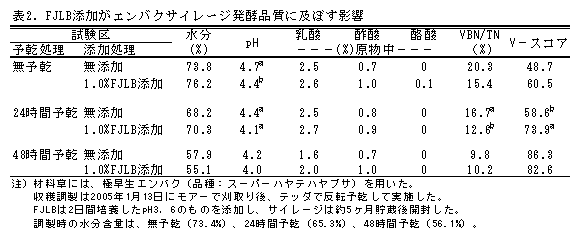 付着乳酸菌事前発酵液を用いたイタリアンライグラスおよびエンバクのサイレージ発酵品質 |