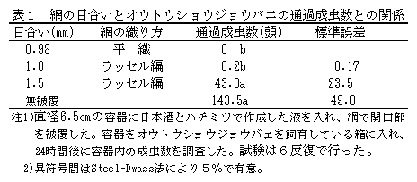 ブルーベリー園を目合い0.98mmの網で被覆することにより、オウトウショウジョウバエ成虫の侵入を完全に防止できる。未熟果も加害されるため、果実が着色し始めたら被覆する。 |