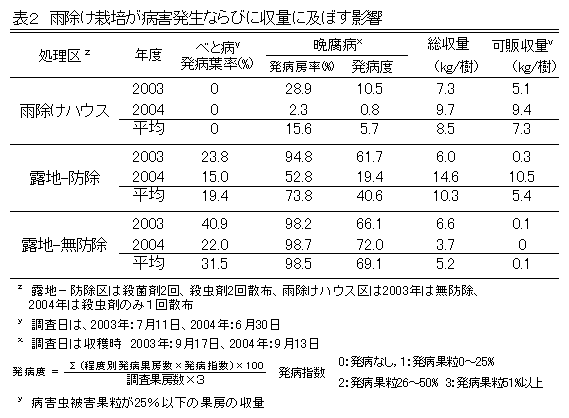 [キーワード]ヤマブドウ、雨除け栽培、べと病、晩腐病、減農薬、安定生産 |