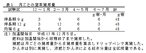 ハウスイチジクのボックス栽培における生育期間中の施肥管理 |