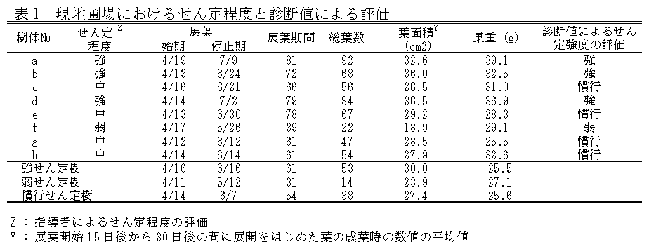 ウメ「紅サシ」の長梢の葉面積を指標としたせん定強度の診断 |