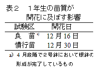 スズランエリカは、富士北麓の鉢花生産者に導入されて約10年が経過し、早春の基幹品目として定着しつつある。しかし鉢花市況の低迷から、開花の前進化や新しい商材としての開発が望まれていた。そこで、主幹を1本に仕立てて樹型を円錐形に整える方法、開花を促進させる方法および花着きを向上させる方法について明らかにする。 |