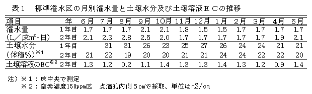 アルストロメリア潅水同時施肥栽培の潅水・施肥基準 |