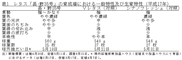 初夏どり向きの高品質レタス「長・野35号」の育成 |