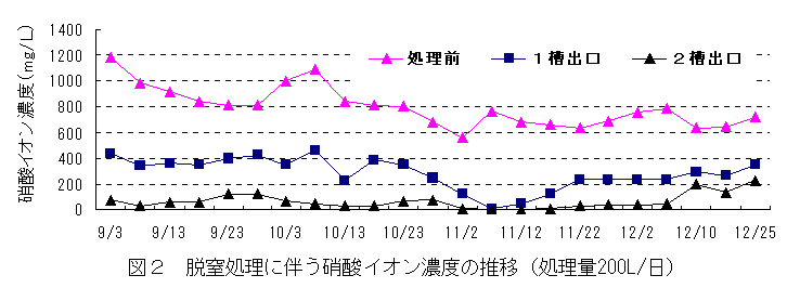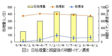 ロックウール栽培の余剰養液処理システムは、夏秋トマト栽培において戻り液の75%を再利用し、残り25%の排液中に含まれる窒素をイオウ酸化菌によりガス化して空中に発散させ、リンを浄水場発生汚泥に吸着させるもので環境保全に有効である。 |