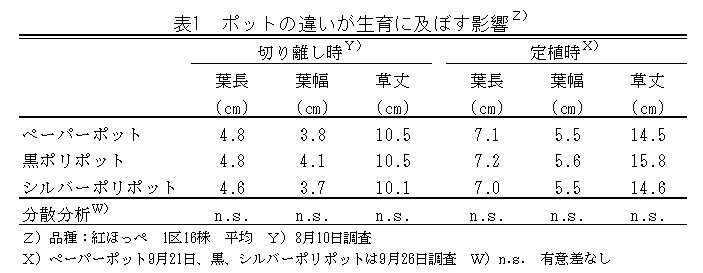 イチゴ「紅ほっぺ」、「章姫」の育苗において、ペーパーポットを用いることにより、ポリポットに比べ鉢内培地温度が低下し、花芽分化を前進化できる。 |