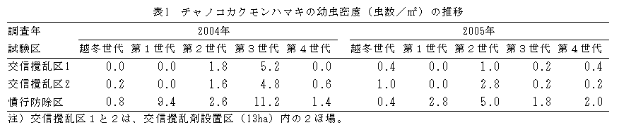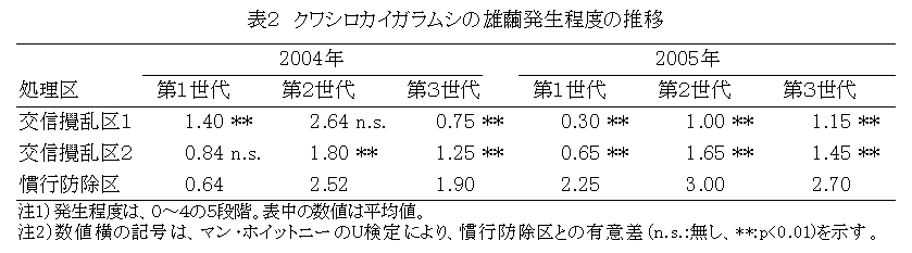 交信攪乱剤を組み込んだ減農薬防除によるクワシロカイガラムシの密度抑制 |