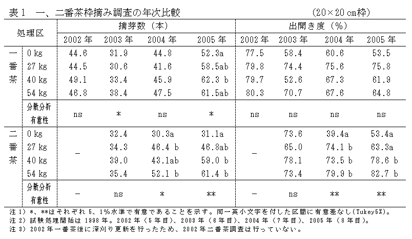 [担当]静岡茶試・土壌肥料研究 [連絡先]電話0548-27-2311 [区分]関東東海北陸農業・茶業 [分類]技術・参考 |