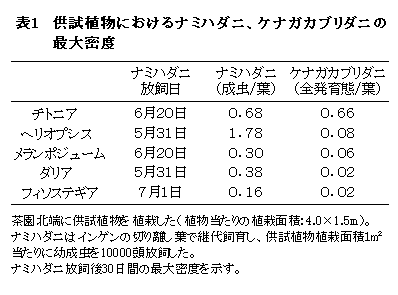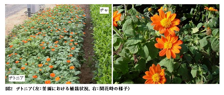 キク科のチトニアは、代替餌にナミハダニを利用することでチャのカンザワハダニの土着天敵であるケナガカブリダニを効率的に増殖でき、バンカー植物に適している。 |