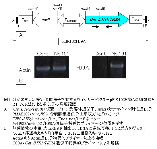 改変エチレン受容体遺伝子(Cm-ETR1/H69A )導入による雄性不稔キクの作出 |