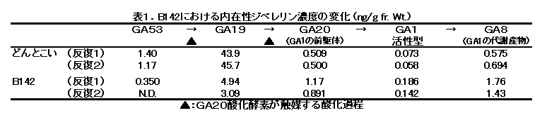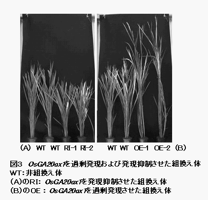 [キーワード]イネ、OsGA20ox1、草丈、組換え体、GA(ジベレリン)生合成 |