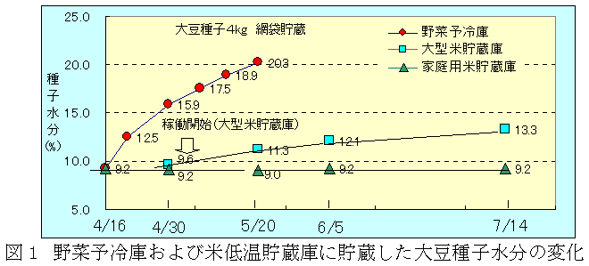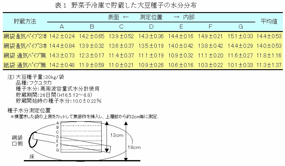 [キーワード]ダイズ、種子、水分調節、野菜予冷庫、網袋、通気用パイプ |