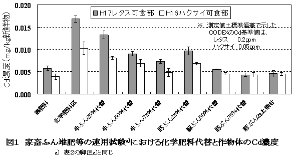 [キーワード]家畜ふん堆肥、化学肥料代替、カドミウム、ハクサイ、レタス |
