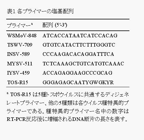 日本に発生する5種トスポウイルスのマルチPCR法による同時検出・同定 |
