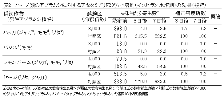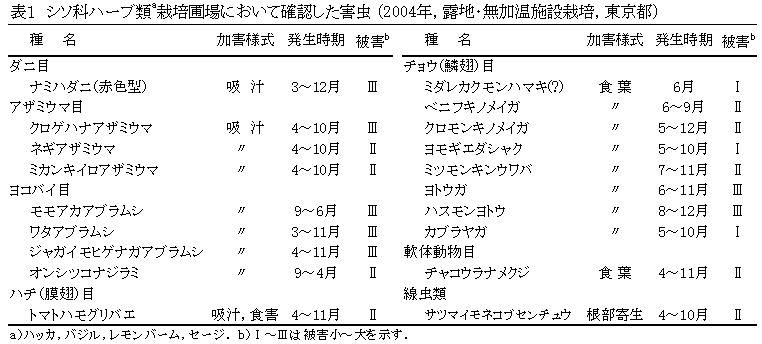 シソ科ハーブ類栽培で発生する害虫種と防除薬剤の登録データの取得 |