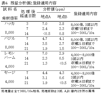 [キーワード]ハーブ、害虫、殺虫剤、農薬登録、農薬残留値 |