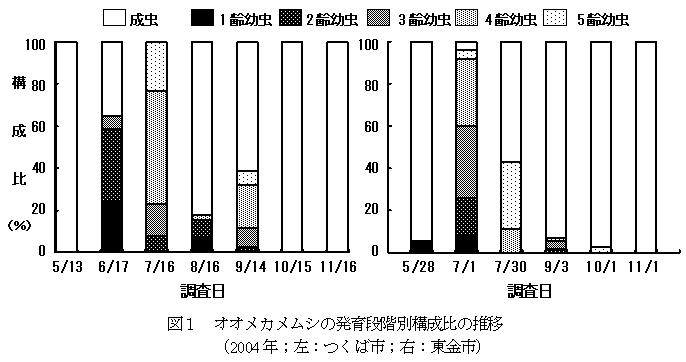 オオメカメムシの発育段階の推移にもとづく生活史の推定 |