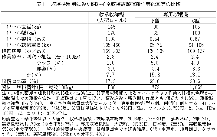 [キーワード]飼料イネ、専用収穫機、梱包密度、収穫ロス、梱包密度、イネWCS、経費 |