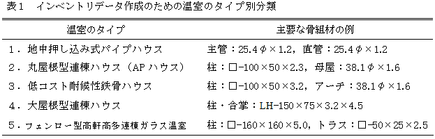 構造部材のインベントリ化による温室建設の環境負荷の推計 |