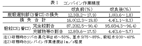 ソバの早期収穫作業精度向上のためのコンバインの改良 | ||||||||