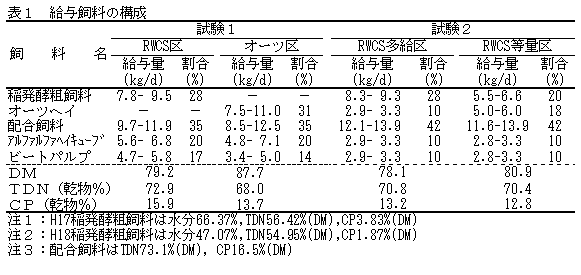 本成果は、黄熟期までに収穫し、適正に保管したサイレージを用いた結果であり、同等の成績を得るには適期収穫、良質発酵、良好な保管が必要である。 |