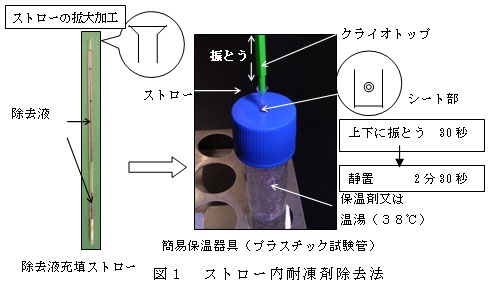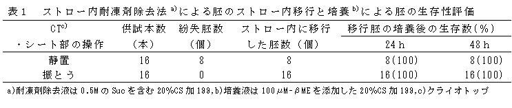 クライオトップでガラス化保存したウシバイオプシー胚のストロー内耐凍剤除去法 | ||||||