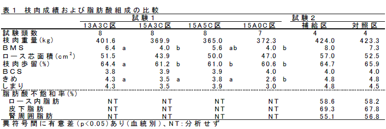 研究課題名:和牛雌牛肥育におけるビタミンC給与効果の検討 | ||||||||||