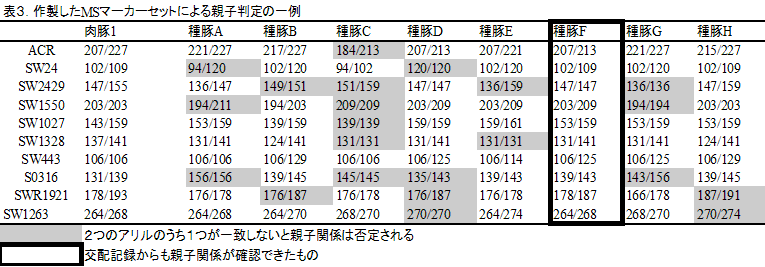 ブタの親子判定のためのマイクロサテライトマーカーセットの作製 |