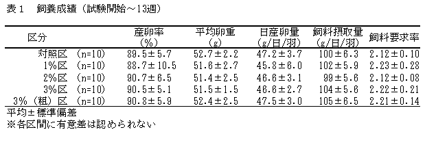 納豆給与が産卵鶏の飼養成績に及ぼす影響 | ||||||||