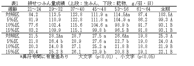 エキスパンダー加工飼料の配合による採卵鶏の排せつふん量低減化 | ||||||||