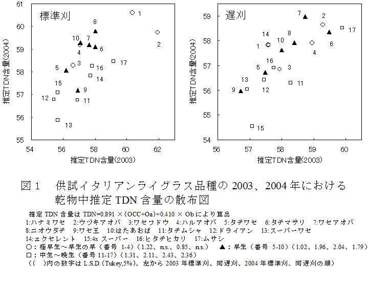 [キーワード]飼料作物育種、イタリアンライグラス、推定TDN含量、品種間差 |