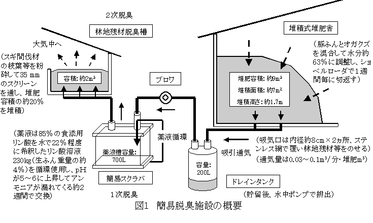 豚ふんの吸引通気式堆肥化における簡易スクラバと林地残材による脱臭技術 |