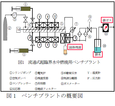 内容積16Lで連続的に豚ふんの燃焼ができる流通式超臨界水中用ベンチプラント(図1)を製作する。 |