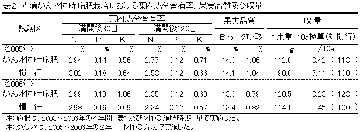 [キーワード]ハウスミカン、施肥法、かん水同時施肥、葉内成分、収量、果実品質 |