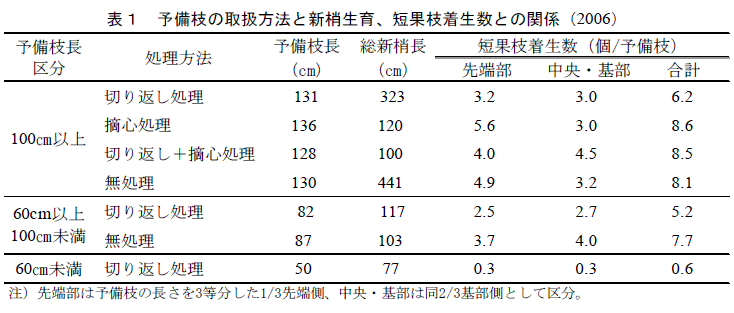 ニホンナシ「あきづき」の短果枝着生を目的とした結果枝育成法 | ||||||||||||||
