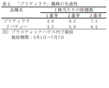 親株から採取できる穂数は、「リバティー」と同等かやや多い(表2)。 |
