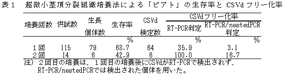 超微小茎頂分裂組織培養法によるキクウイロイドフリー株作出技術の開発 | ||||||