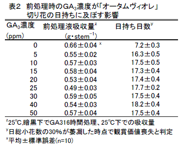 アリウム「オータムヴィオレ」切り花のGA3前処理による日持ち向上 | ||||||