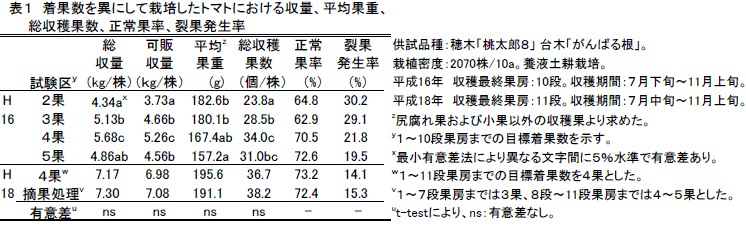 [キーワード]夏秋トマト、着果制限、労力分散、収益性 |