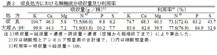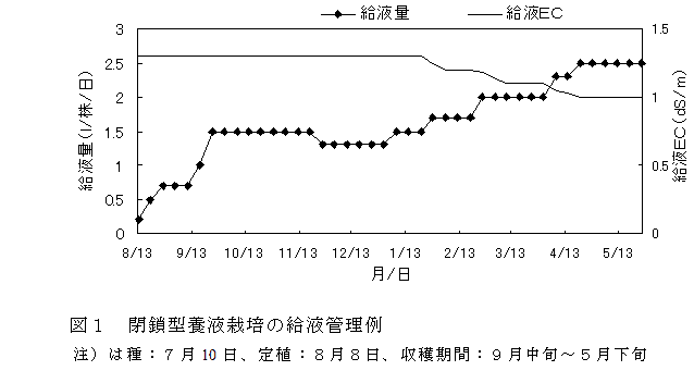 [キーワード]閉鎖型 環境保全型養液栽培、ナス、養分吸収量、培養液処方、給液管理 |