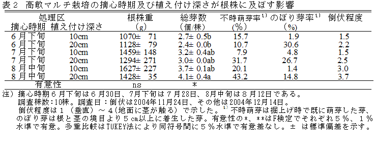 [キーワード]ウド、湿害、高畝、マルチ被覆 |