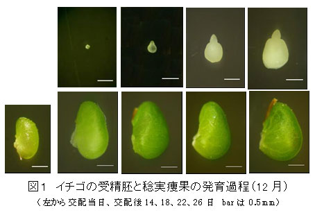 [キーワード]イチゴ、受精胚、胚珠、発育、果実成熟日数 |
