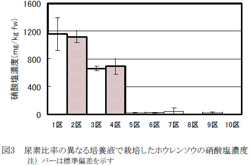 養液栽培ホウレンソウの培養液に尿素を活用すると硝酸塩濃度を削減できる | ||||||||