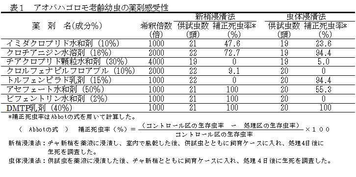 [キーワード]チャ、アオバハゴロモ、薬剤感受性、DMTP乳剤 |