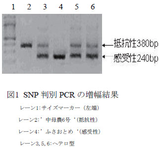 [キーワード]育種選抜、DNAマーカー、ツマグロヨコバイ抵抗性、SNP判別PCR |